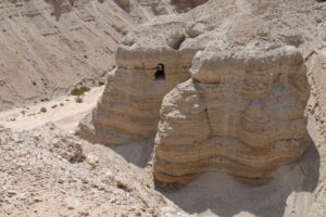 Foto 1: Grot in Qumran, vindplaats van vele geschriften. Foto: A. Aksu.
