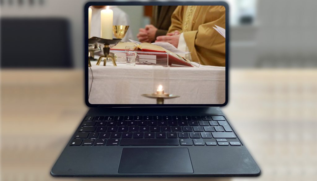 Eucharistievieringen zijn behalve op locatie ook te volgen via televisie en/of internet (computerscherm). Sinds de coronacrisis bieden diverse parochies eenlive-stream uitzending van hun parochieviering via internet.